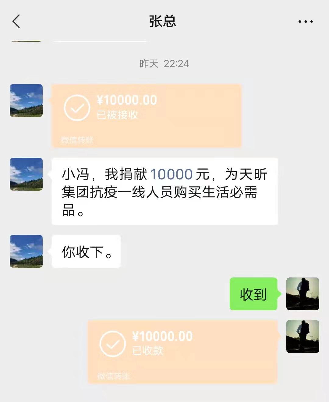 党委书记张冬雪捐款10000元用于抗疫一线人员购买物资